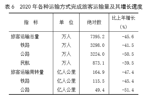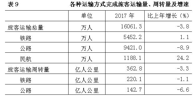 全年旅客运输总量[16]25802.8万人,比上年减少1.7%。旅客运输周转量273.9亿人公里,增长8.3%。