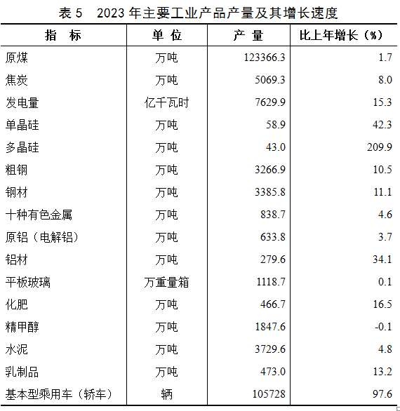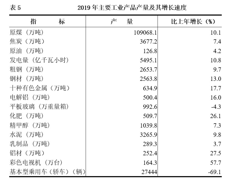 [12]主要工业产品产量中,除原煤产量、发电量为全口径数据,其余为规模以上工业企业口径。