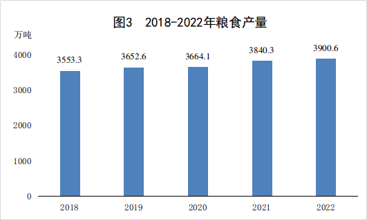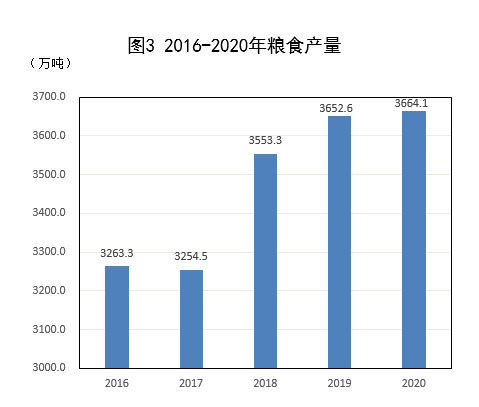 全年农作物总播种面积880.9万公顷。其中,粮食作物播种面积698.5万公顷,比上年增长0.5%。粮食产量3957.8万吨,比上年增长1.5%。