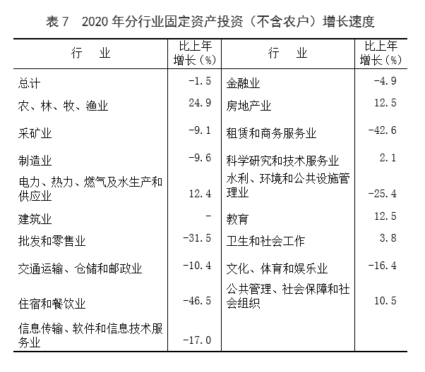 在固定资产投资(不含农户)中,第一产业投资比上年增长73.6%,第二产业投资增长15.4%,第三产业投资增长5.1%。基础设施投资[19]比上年增长23.8%。制造业投资比上年下降0.7%。民间投资[20]比上年增长1.6%,扣除房地产开发投资,民间投资增长6.6%。
