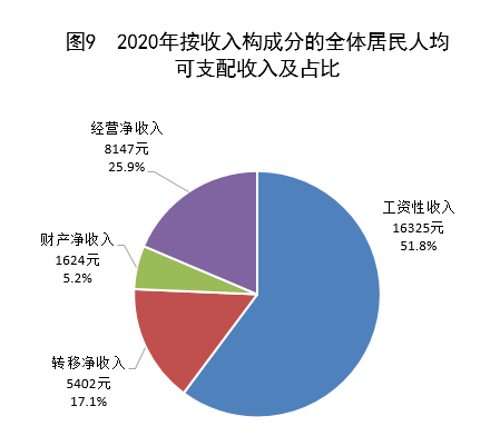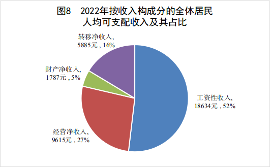 全年全体居民人均可支配收入40077元,比上年增长5.1%。按常住地分,城镇居民人均可支配收入50888元,比上年增长4.5%。从主要收入构成看,工资性收入31384元,增长5.5%;经营净收入9542元,增长2.9%;财产净收入2583元,下降2.1%;转移净收入7379元,增长5.3%。农村牧区居民人均可支配收入22543元,增长6.2%。从主要收入构成看,工资性收入4407元,增长7.9%;经营净收入12161元,增长4.8%;财产净收入664元,增长14.6%;转移净收入5311元,增长7.3%。
