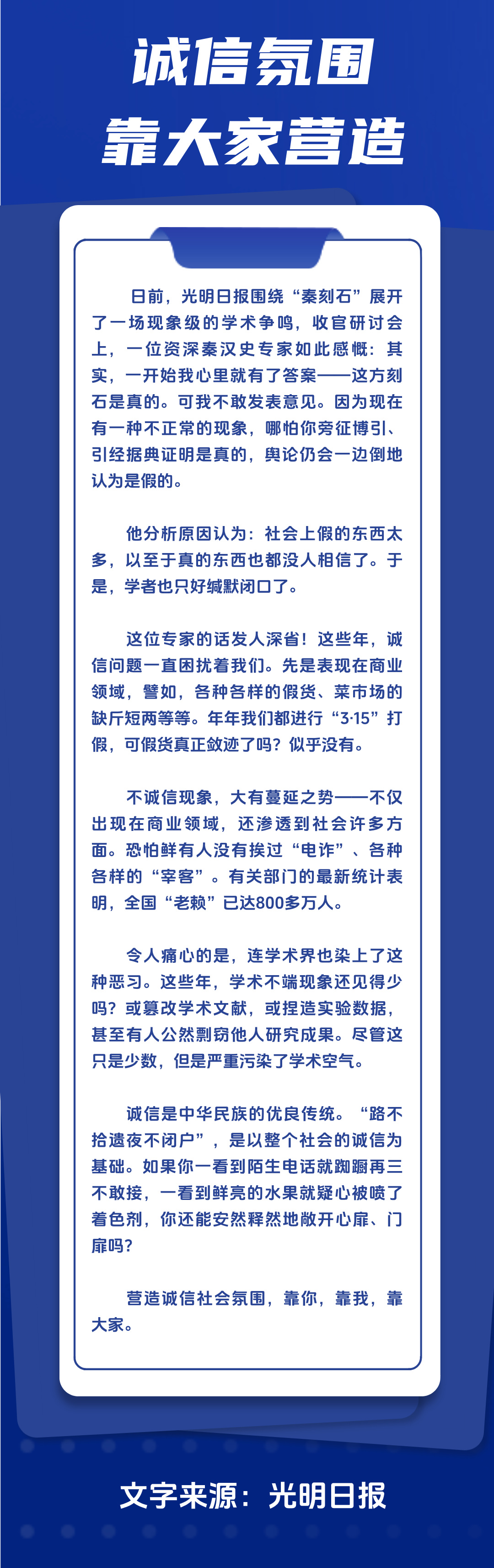 诚信氛围靠大家营造