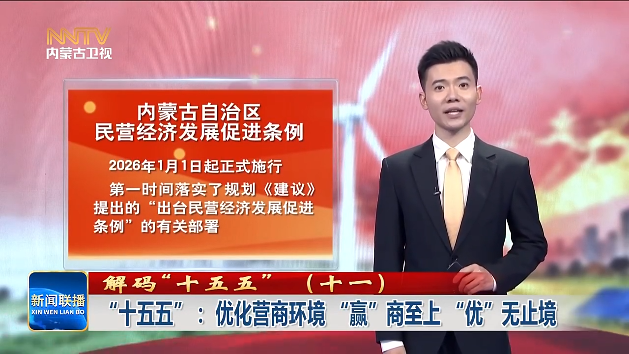 《内蒙古自治区党委关于制定国民经济和社会发展第十五个五年规划的建议》,对未来五年内蒙古发展作出顶层设计和战略擘画,是乘势而上、接续推进中国式现代化内蒙古新篇章的总部署。《内蒙古新闻联播》特别策划《解码“十五五”》今天播出第十一期《“十五五”:优化营商环境 “赢”商至上 “优”无止境》。