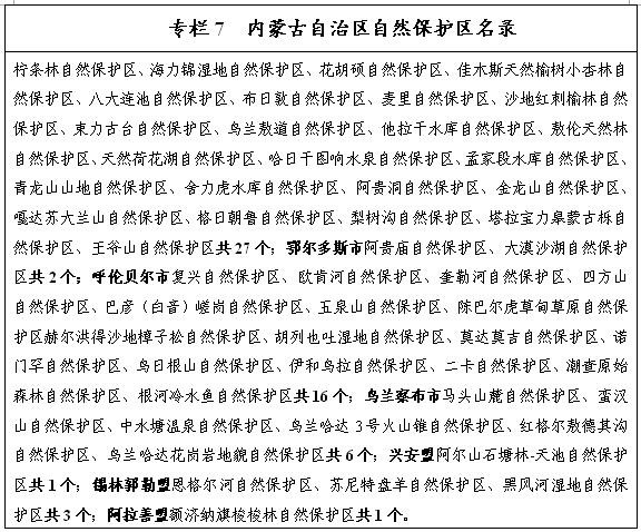 生态环境保护建设与构筑北方重要生态安全屏障的要求尚有差距。一是生态环境仍很脆弱。全区中度以上生态脆弱区域占国土面积的62.5%,其中,重度和极重度占36.7%;森林覆盖率低于全国平均水平,草原退化、沙化、盐渍化面积近70%,天然湿地大面积萎缩。二是生态环境质量有待提高。2015年全区生态环境质量状况等级总体评价为一般,12个盟市中乌海市、鄂尔多斯市、巴彦淖尔市和阿拉善盟为较差和差,占国土面积的35.77%;43个重点生态功能区所属县域生态环境状况指数为48.93,其中乌拉特中旗、乌拉特后旗、四子王旗和苏尼特右旗为较差,阿拉善左旗、阿拉善右旗和额济纳旗为差,较差和差的面积占国土面积的30.80%。三是资源开发与生态环境保护矛盾仍然存在。一些地区重发展、轻保护,资源开发方式仍较粗放,生态系统服务功能有所降低,自然保护区内违法违规开发问题仍然多见,89个国家和自治区级自然保护区中41个存在违法违规情况,涉及企业663家。四是生态环境风险监管仍需加强。我区煤炭、火电、化工、黑色及有色金属行业占国民经济比重较大,存在一定生态环境风险隐患,监管力度还需加强。