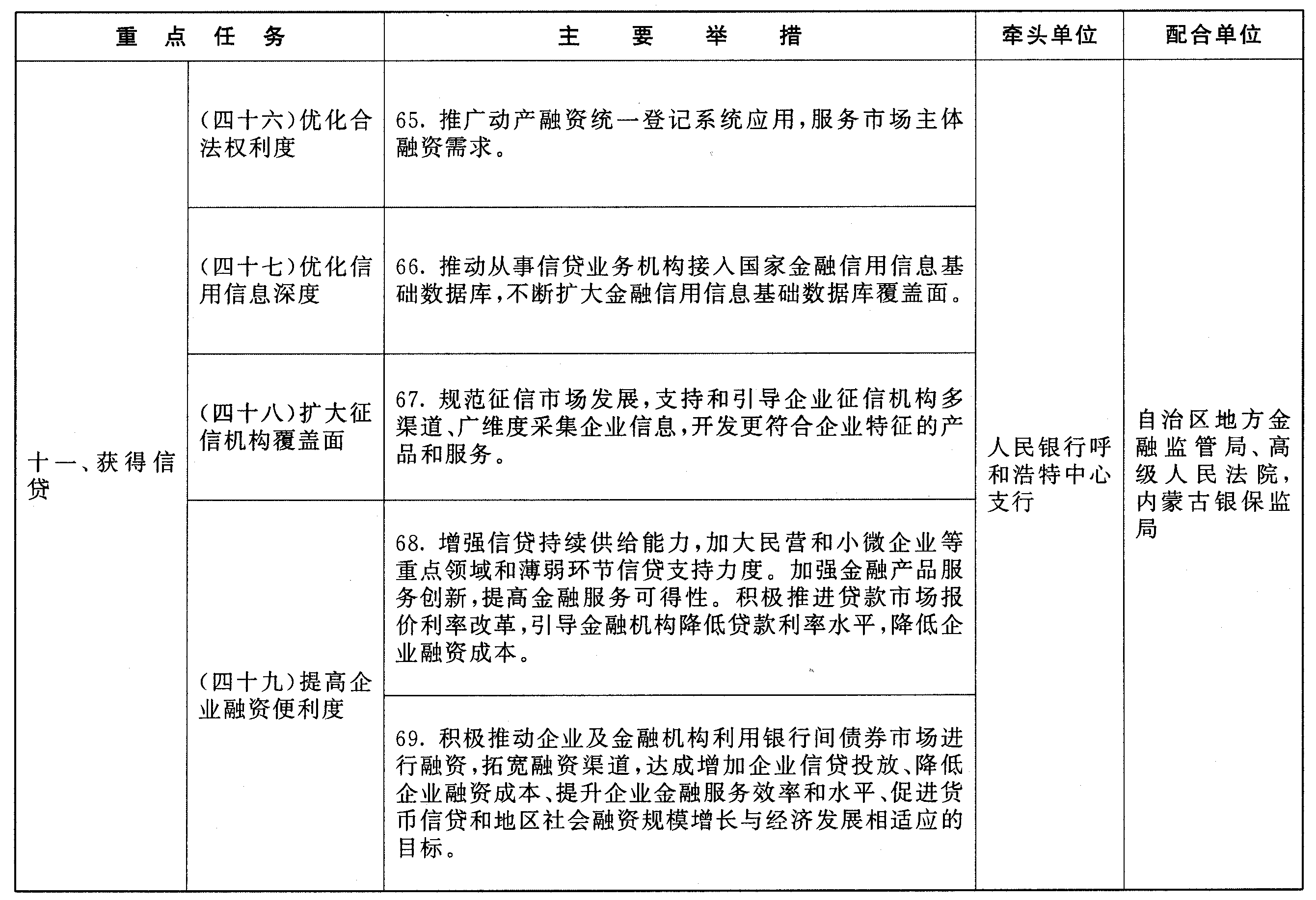 附件:内蒙古自治区优化营商环境行动方案主要举措及责任分工
