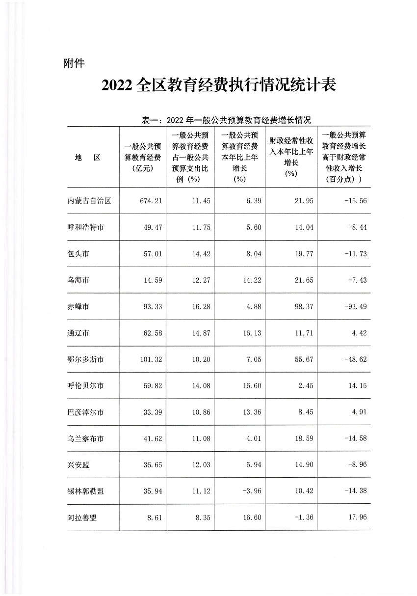 附件:2022 年全区教育经费执行情况统计表