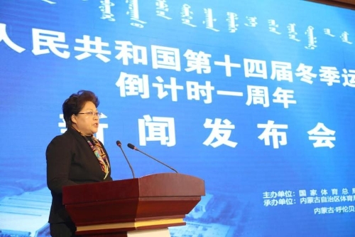 2月16日,中华人民共和国第十四届冬季运动会倒计时一周年新闻发布会在呼伦贝尔召开。国家体育总局副局长杨宁致辞,内蒙古自治区副主席、十四冬筹委会副主任、十四冬筹委会办公室主任艾丽华在发布会上致发布辞。