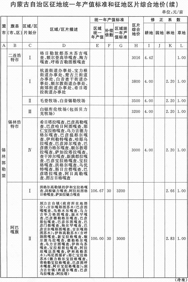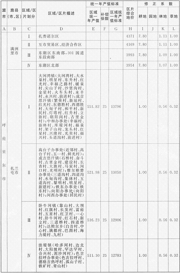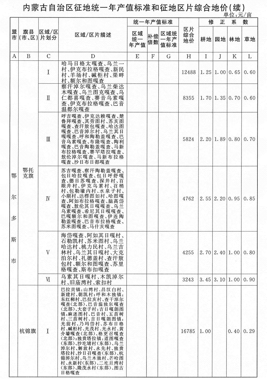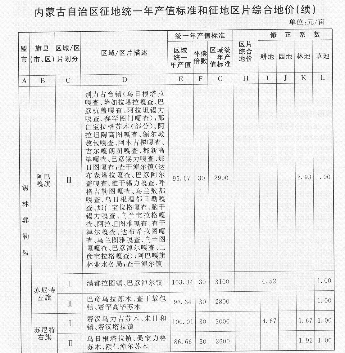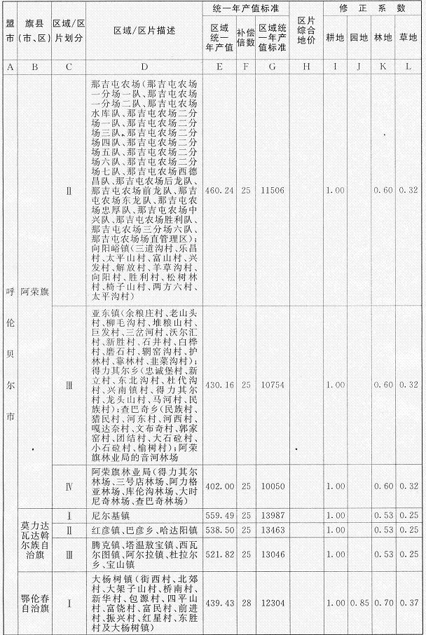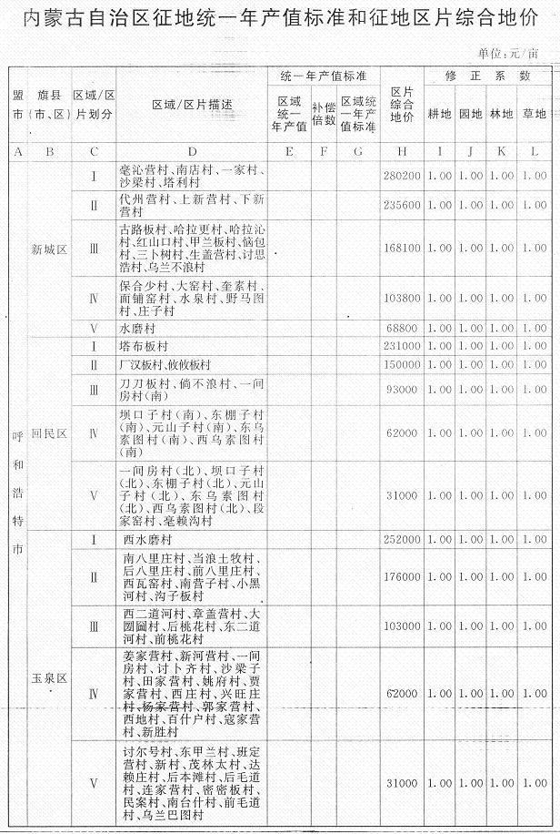 为深入贯彻落实《国务院关于深化改革严格土地管理的决定》(国发〔2004〕28号)精神,进一步加强征地补偿安置工作,经自治区人民政府同意,决定公布自治区征地统一年产值标准和征地区片综合地价(以下简称新征地补偿标准),并于自2012年1月1日起施行。现将有关事宜通知如下: