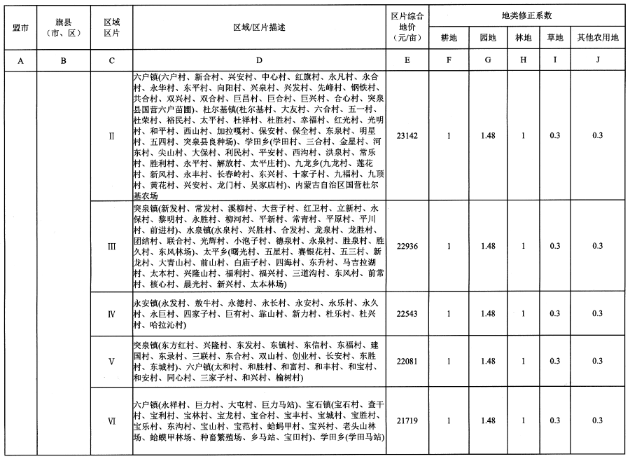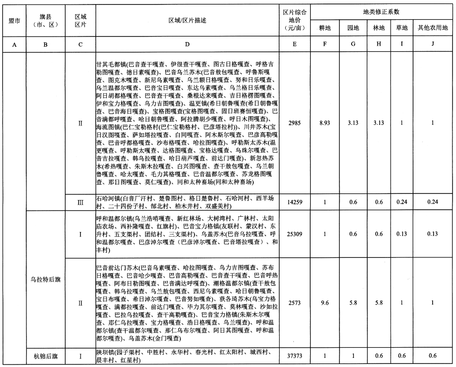 此次公布中未明确具体区片的苏木乡镇或者嘎查村组,征地补偿标准按该苏木乡镇所属旗县(市、区)或者该嘎查村组所属苏木乡镇的最高补偿标准执行。征收涉及永久基本农田的,按照所属旗县(市、区)最高标准补偿执行。