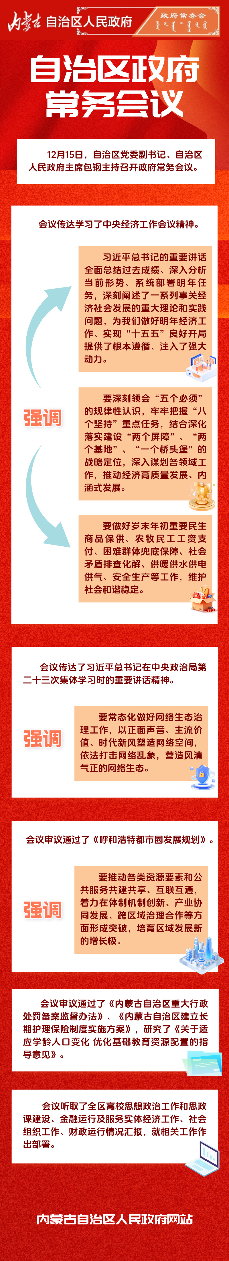12月15日,自治区党委副书记、自治区人民政府主席包钢主持召开政府常务会议。