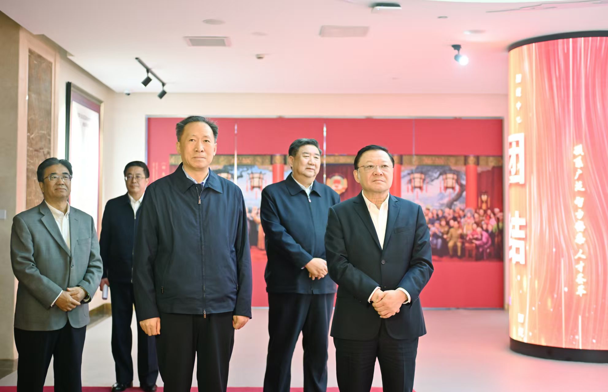 10月10日下午,自治区党委书记王伟中走进自治区政协机关,参观《自治区政协光辉历程展》,并与政协领导班子成员交流。草原云·内蒙古新闻网记者马建兵 摄