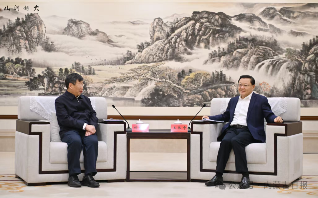王伟中代表自治区党委和政府对刘伟平一行表示欢迎,对三峡集团长期以来给予内蒙古的支持表示感谢,并介绍了全区经济社会发展特别是新能源发展情况。他说,当前我们正在深入学习宣传贯彻党的二十届四中全会精神,全面贯彻落实习近平总书记对内蒙古系列重要讲话重要指示精神,按照习近平总书记、党中央对内蒙古的战略定位,科学谋划“十五五”时期全区经济社会发展。“十五五”期间,内蒙古将坚持风光水核等多能并举,着力提高新能源开发利用水平,与三峡集团的合作拥有巨大空间。希望三峡集团充分发挥自身优势,在加快推进“沙戈荒”基地等项目建设的同时,加大储能、氢能等领域的资金投入和科技创新力度,在内蒙古建成一批绿电就地消纳示范项目。我们将全力打造市场化、法治化、国际化一流营商环境,为包括三峡集团在内的各类企业来内蒙古发展提供优质高效服务。