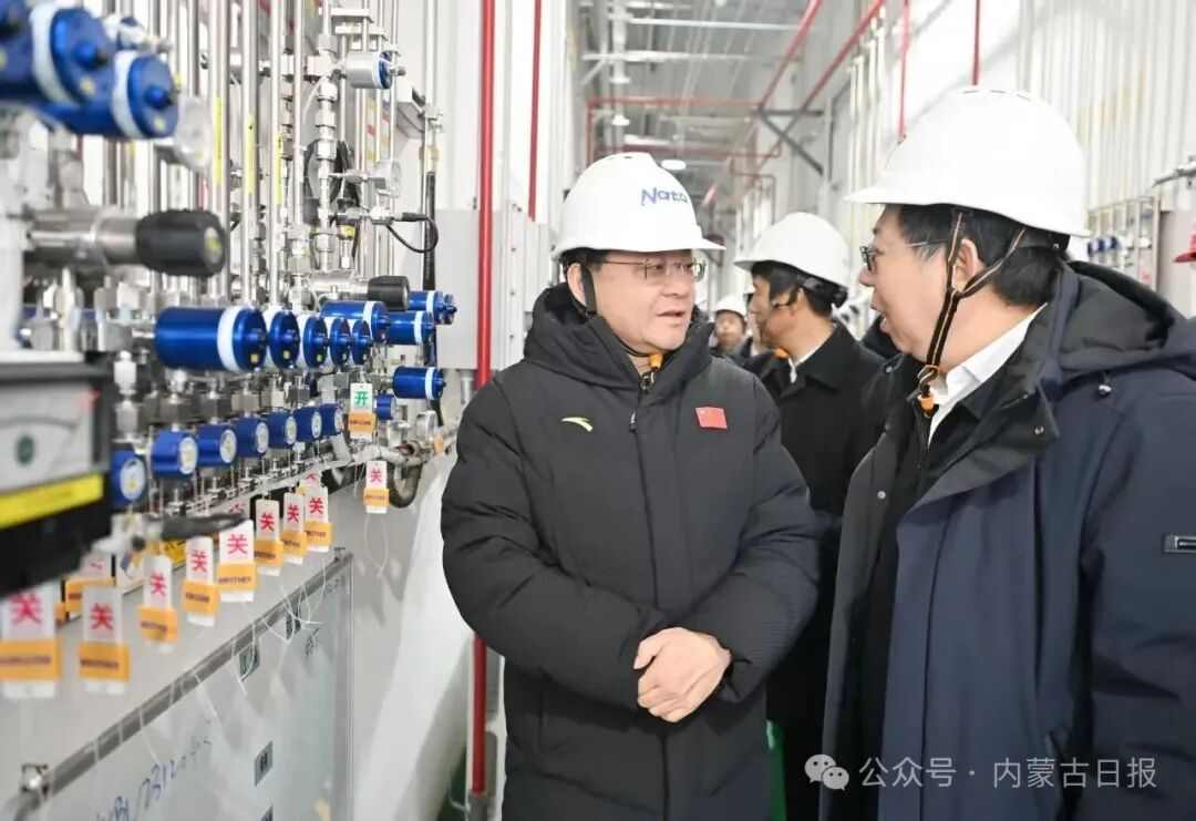 12月2日,自治区党委书记王伟中在南大光电(乌兰察布)有限公司察看高纯电子级三氟化氮生产情况。草原云·内蒙古新闻网记者 马建兵 摄