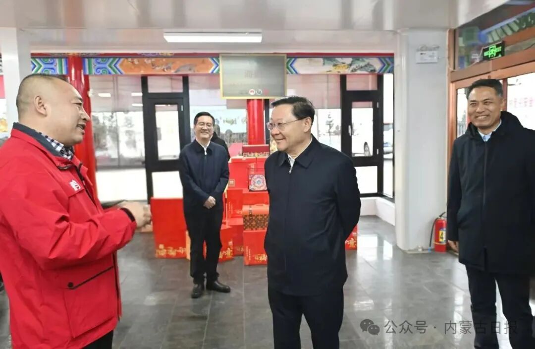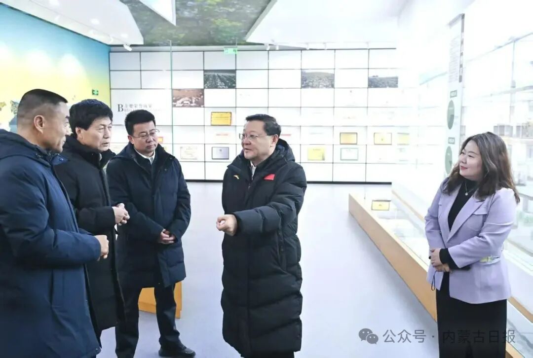 12月1日,自治区党委书记王伟中在海鹏食品股份有限公司调研,询问生产技艺革新、销售布局、品牌建设等情况。草原云·内蒙古新闻网记者 马建兵 摄