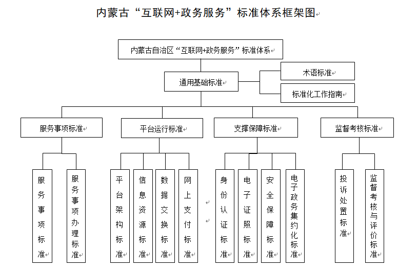 围绕“互联网+政务服务”平台,即:政务服务ld体育中国官方网站、政务服务管理平台、业务办理系统、政务服务数据共享平台四部分,构建科学、合理的内蒙古自治区“互联网+政务服务”标准体系框架结构,明确自治区“互联网+政务服务”标准化工作的主要范围和重点领域,指导相关标准的制定修订工作,促进已发布国家标准、行业标准及地方标准的贯彻实施。通过重点标准的有效实施,全面提升自治区“互联网+政务服务”建设和服务的整体水平。