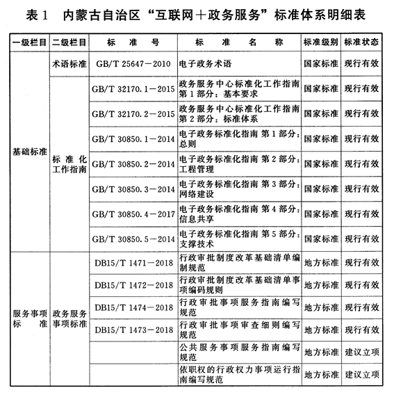 (3)简化优化。以满足自治区“互联网+政务服务”工作、实现“一网通办”为目标,简化优化标准体系中标准数量,选择最实用的标准纳入体系,便于标准实施应用。