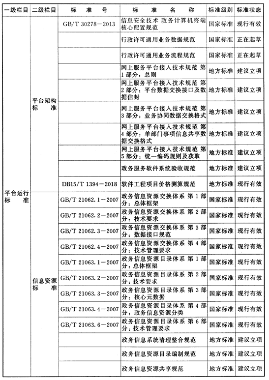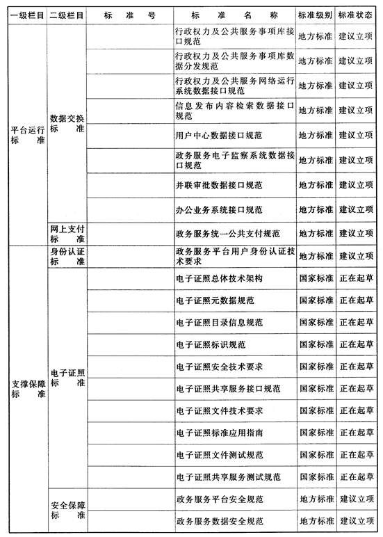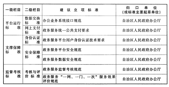通过梳理自治区“互联网+政务服务”标准明细表,对自治区急需制定的地方标准进行汇总,形成表3。