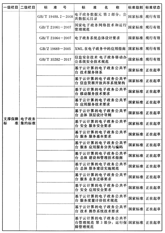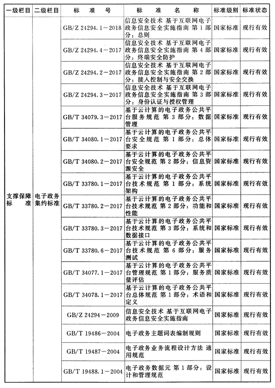 安全保障标准主要包括政务服务平台安全及政务服务数据安全等方面的相关标准。