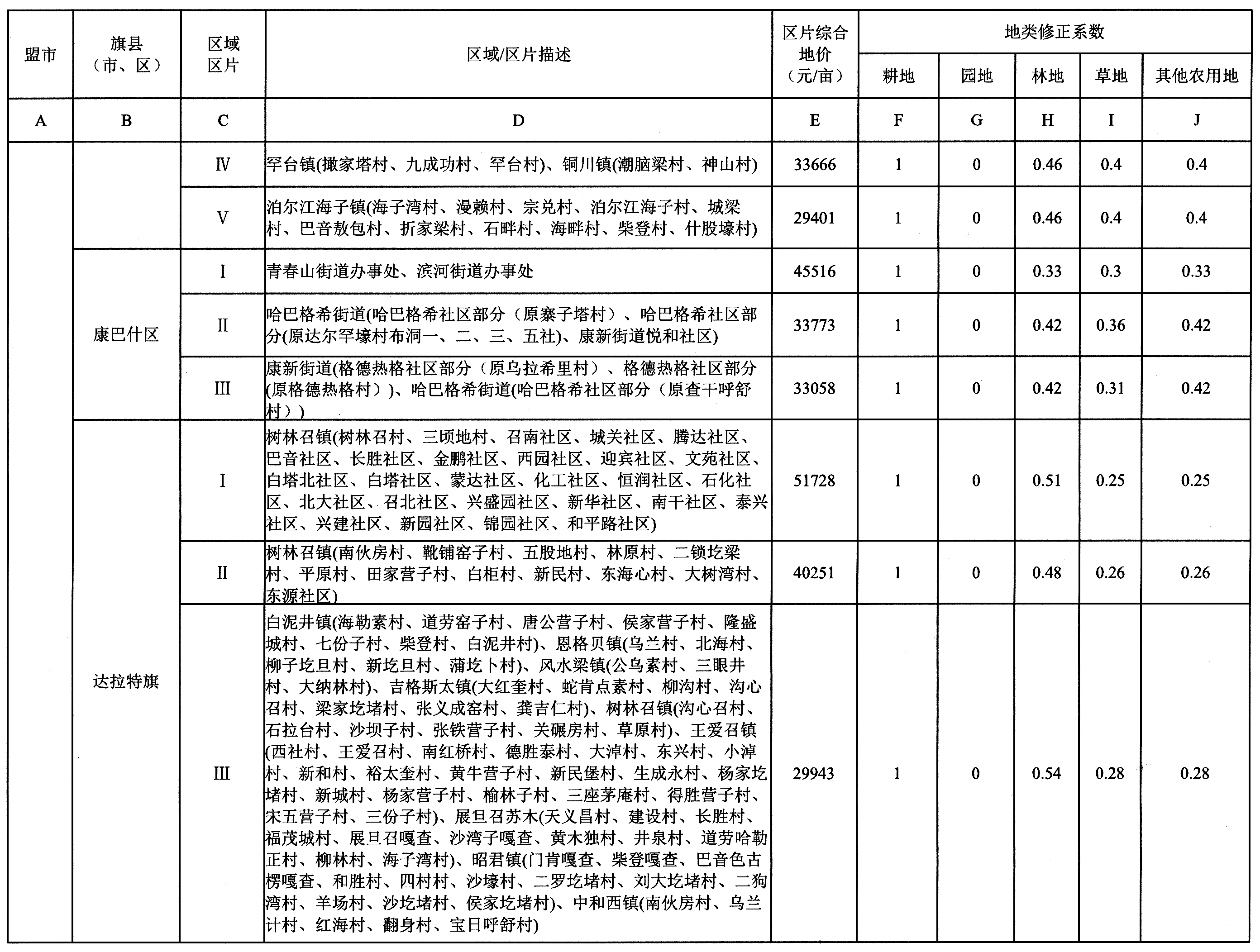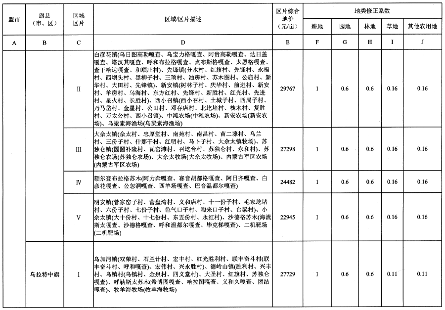 此次公布中未明确具体区片的苏木乡镇或者嘎查村组,征地补偿标准按该苏木乡镇所属旗县(市、区)或者该嘎查村组所属苏木乡镇的最高补偿标准执行。征收涉及永久基本农田的,按照所属旗县(市、区)最高标准补偿执行。
